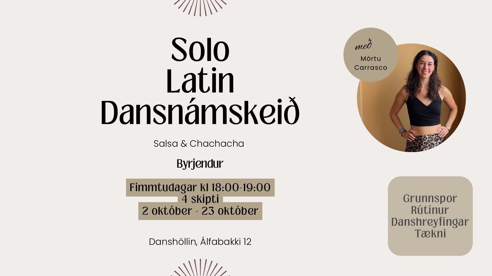 Danskennsla í latin, social- og samkvæmisdönsum fyrir öll level. Námskeið og einkatímar. Námskeið hefst fimmtudaginn 2. okt. 2025